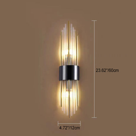 Fra 653,95 krEnhetsprisHjemix | Moderne Nordisk Rund Pipe Lang Rustfritt Stål Krystall 2-Lys Vegglampe Til Stue