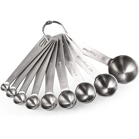 Hjemix | 9-dels sett: rustfrie stålmålskjeer for tørre og flytende ingredienser