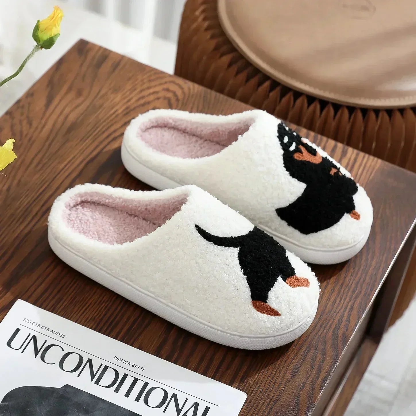 Oppgrader din komfort med disse nydelige tøflene! Det søte designet med dachs er perfekt for kalde vinterdager, mens den myke, sklisikre sålen gir utmerket støtte til føttene dine. Legg til et lekent preg i soverommet ditt med disse behagelige, fluffy tøflene.