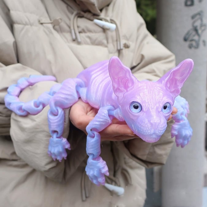 Laget av miljøvennlig PLA, er denne 3D-printede katten trygg, solid, og klar til å lyse opp hager, soverom, bokhyller, eller arbeidsplassen din.