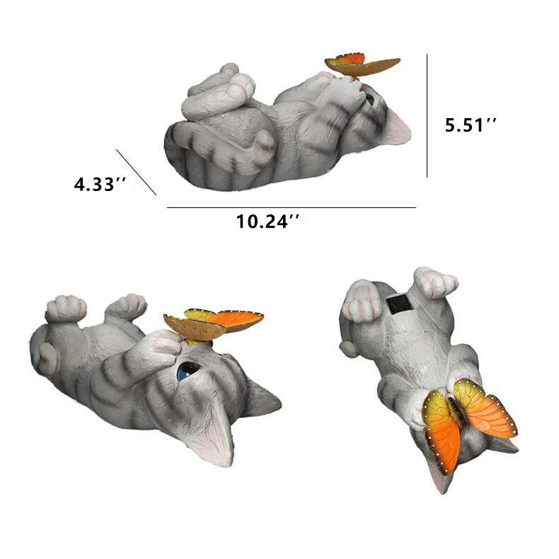 - Distinkt design: Katteformet figur med en lysende sommerfugl – et ekte blikkfang for enhver hage.