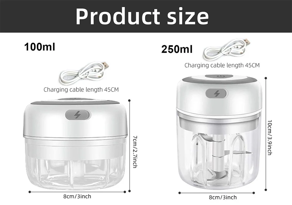 Den kompakte hvitløkshakkeren har en 30W motor og tre forsterkede blader i rustfritt stål som gir utmerket ytelse. Denne elektriske løkshakkeren er perfekt for små oppgaver som å hakke hvitløk, ingefær, chili, grønnsaker, løk og mer.