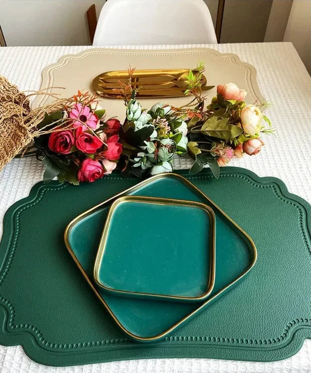 Preget design med avrundede kanter: Gir et moderne og elegant preg til bordoppsettet ditt.