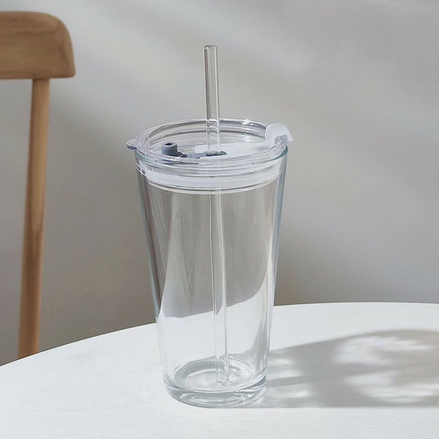 Klar rund kopp laget av borosilikatglass med lokk og sugerør -1395/- per enhet