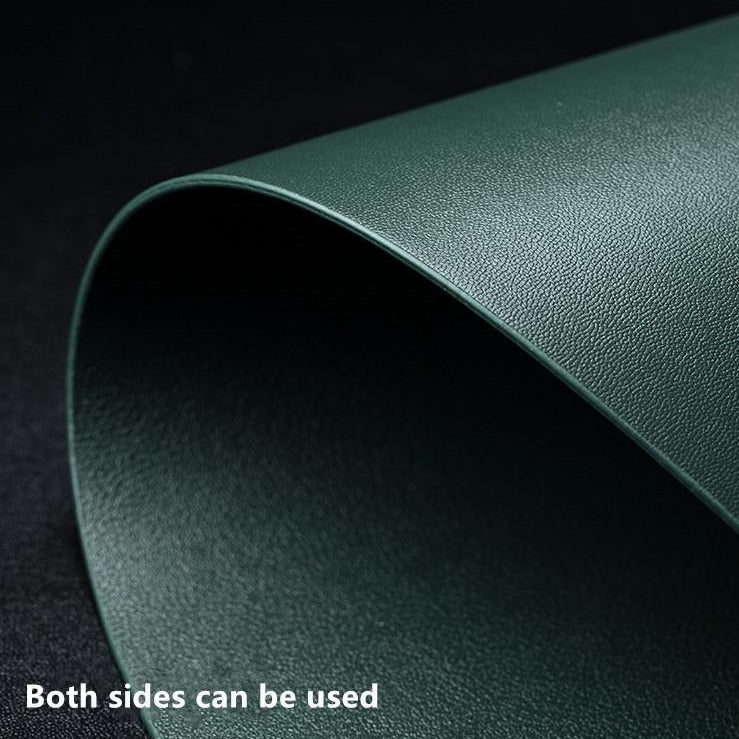 Stilrene og særpregede: rund og trekantet bordmatte kombinert med underlag i skinnlignende materiale.