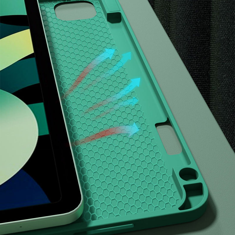 Justerbar stativ: Dekselet har et justerbart stativ som lar deg posisjonere iPaden din i ideell vinkel for komfortabel visning og skriving. Enten du ser på videoer, deltar i virtuelle møter eller leser, kan du enkelt justere stativet for å møte behovene dine.
