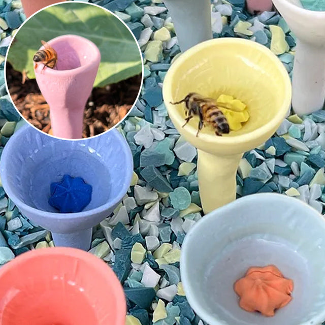 - 🌞 Brukervennlig: Fyll koppen med vann og plasser den utendørs i hagen din. De lyse fargene og det attraktive designet vil tiltrekke biene til en forfriskende pause og lade opp til deres viktige pollineringsoppgaver.