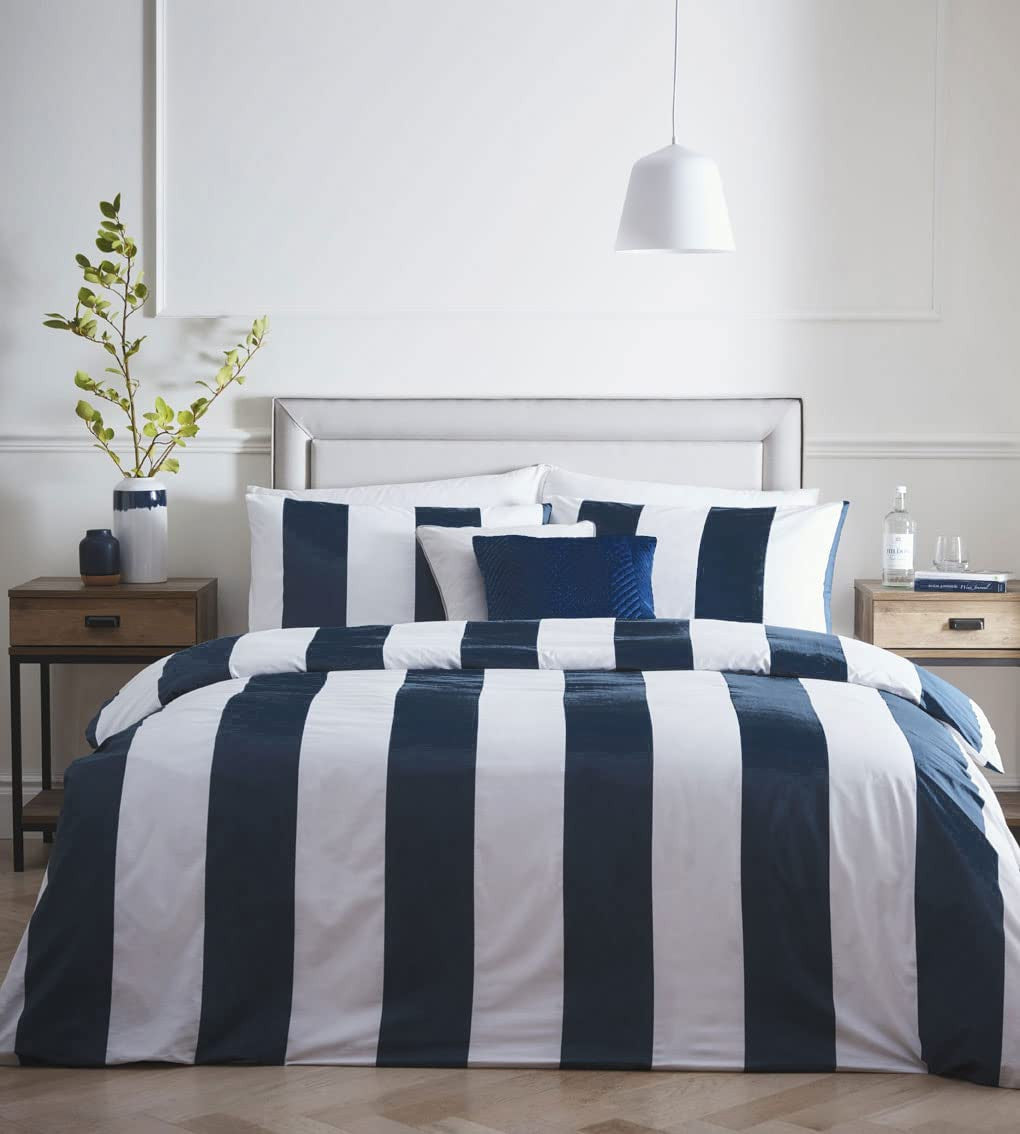 Luksus Marineblå Bomullsstripete Sengetøy Sete
