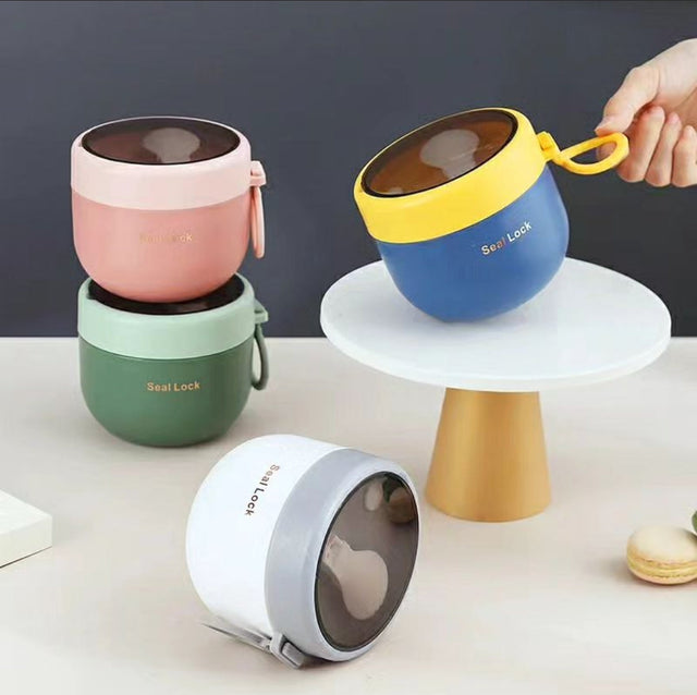 ◾Isolert bento-boks medfølgende en vakuumholdbar suppeskål og skje.