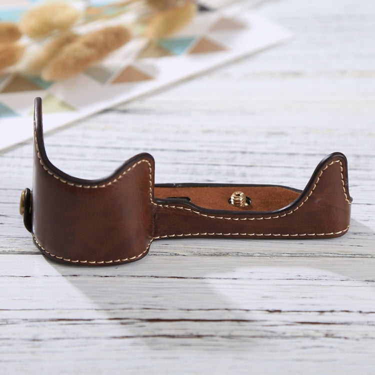 Hjemix | 1/4 tomme gjenge PU skinn kamera halvdeksel bunn for Sony Alpha 6100 / A6100 (Kaffe)