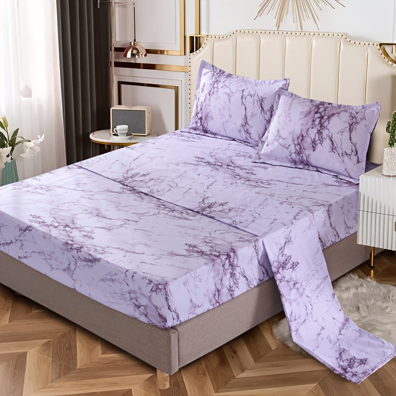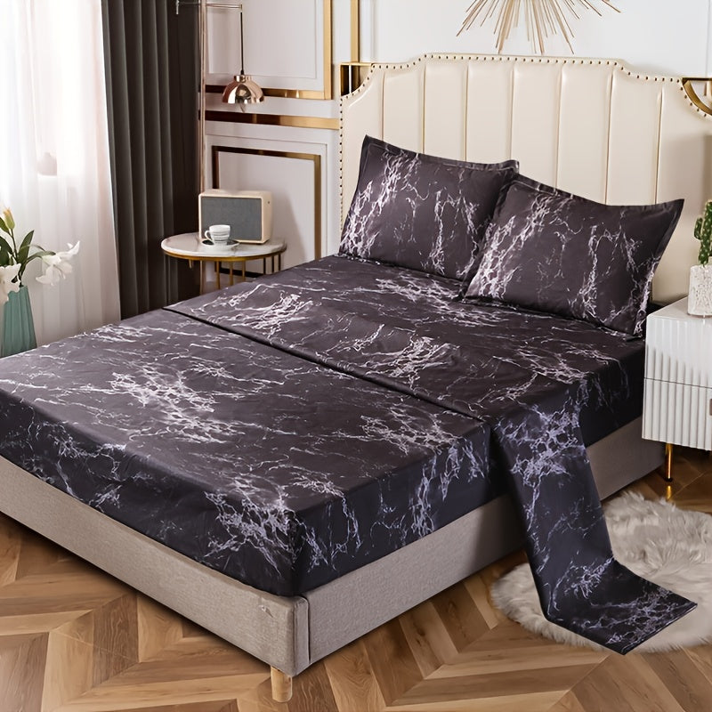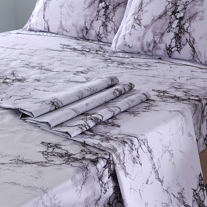 4-Piece Brushed Marble Bedding Set – Soft & Breathable Bedding for All Seasons!