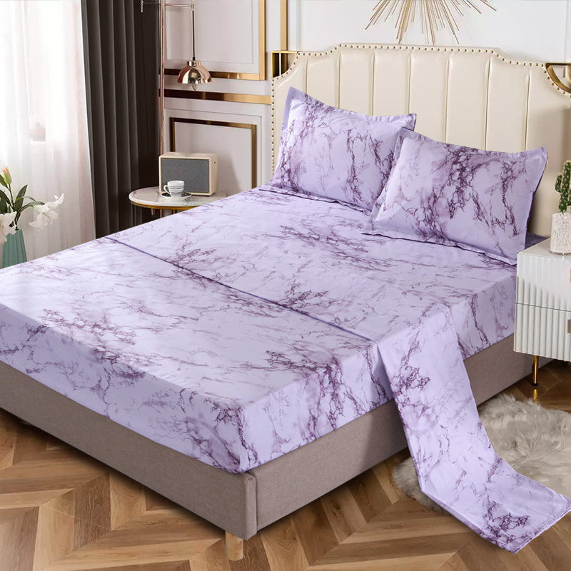 The set includes 1 flat sheet , 1 jersey sheet and 2 pillowcases , making it the perfect all-in-one solution to elevate your bedroom decor. Available in Twin, Full, Queen and King sizes , this bedding set fits perfectly thanks to its tailored design, while the vibrant print keeps the striking marble pattern fresh from wash to wash. Plus, it's machine washable , making cleaning a breeze!