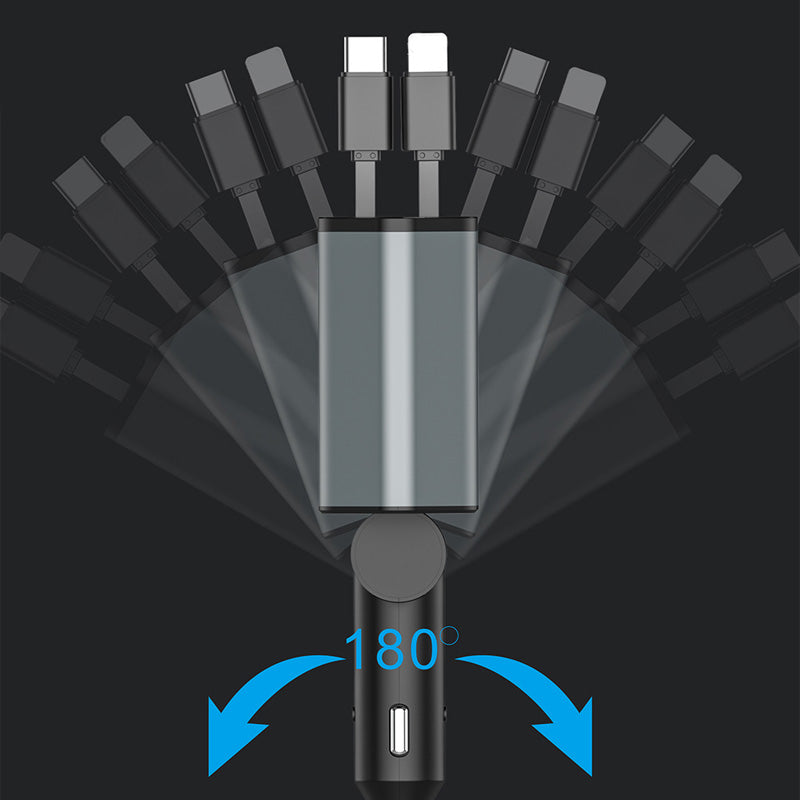 180° JUSTERBART HODE: Den roterende designen muliggjør fleksibel posisjonering for enkel tilgang. Enten sjåfør eller passasjer trenger lading, sørger det justerbare hodet for praktisk kabeltilgang fra alle vinkler.