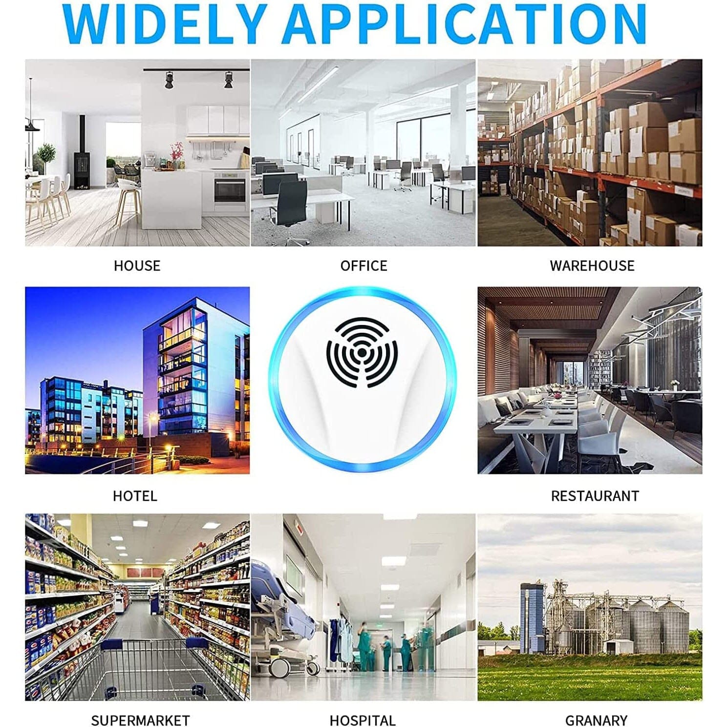 - Denne enheten for skadedyrkontroll har en effektiv rekkevidde på opptil 150 kvadratmeter. Siden ultralydsbølger ikke går gjennom faste hindringer eller vegger, er det lurt å bruke en separat enhet i hvert rom. Nyt omfattende beskyttelse i hele hjemmet ditt, uten ubeskyttede områder. Disse enhetene brukes ofte i hjem, loft, kontorer, restauranter, supermarkeder, sykehus og staller.