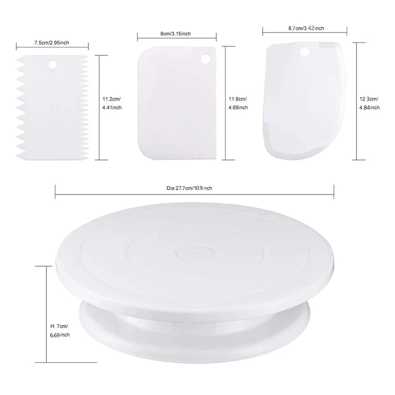 - Roterende kakeholder: Forenkler prosessen med glasering og dekorering takket være en smidig 360-graders rotasjon, perfekt for detaljerte design.