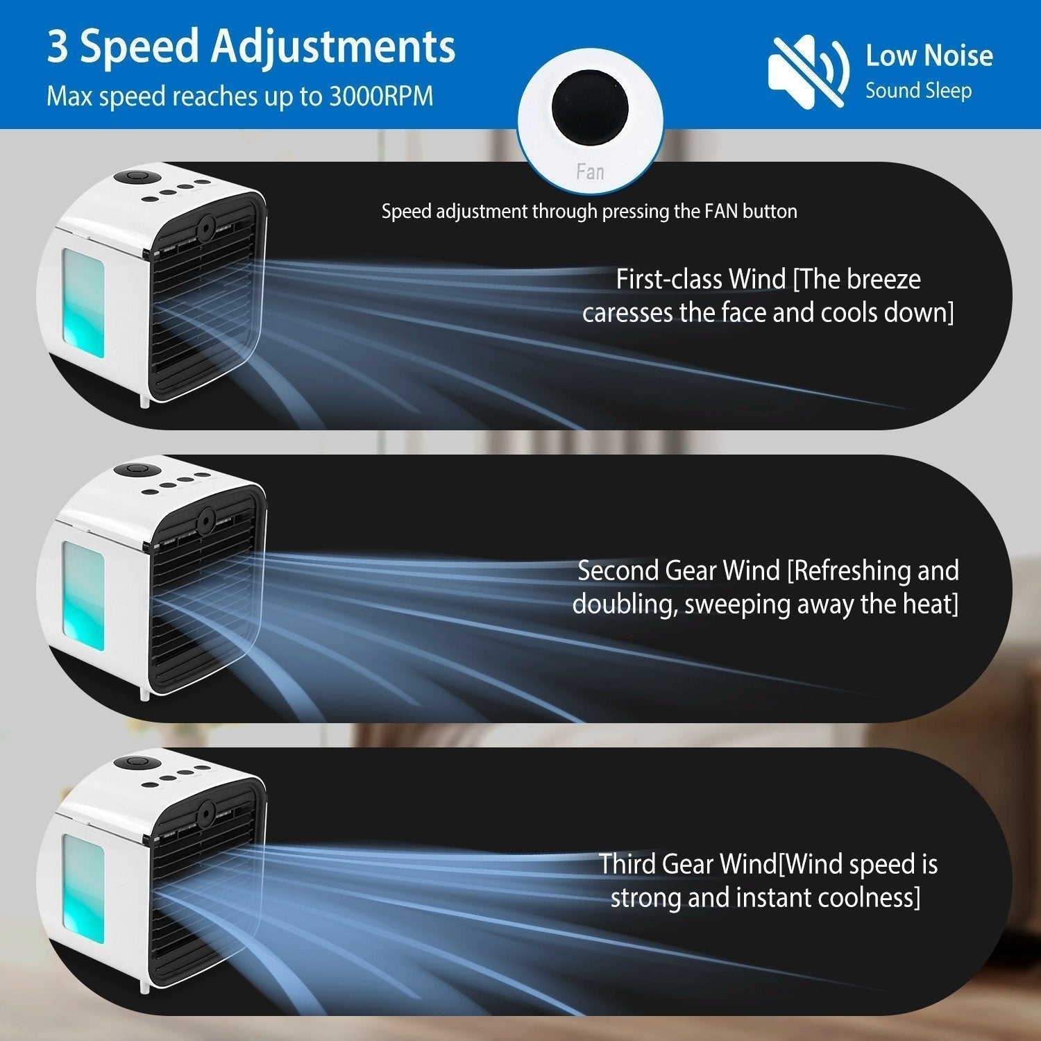 Hjemix | 7-farger byttbar bærbar mini air conditioner kjøleovn vifte