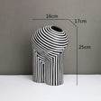 Vi er stolte av å presentere vår fantastiske svart-hvite vase "Abstract Geometry", et enestående verk av moderne design som sømløst fusjonerer håndverk med nytte. Denne vasen, nøye fremstilt, utstråler den tiltrekkende kraften av minimalisme.