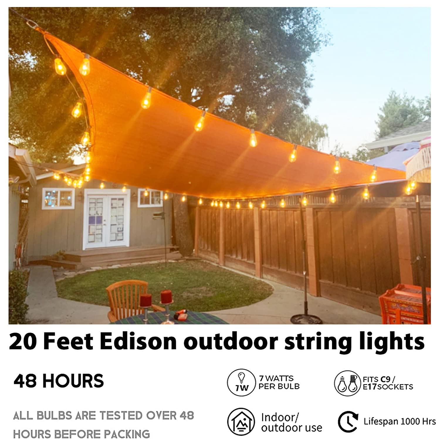 Hjemix | Afirst 20Ft Utendørs Lyskjede med 22 Edison-pærer - Vanntette svarte Bistro-lamper