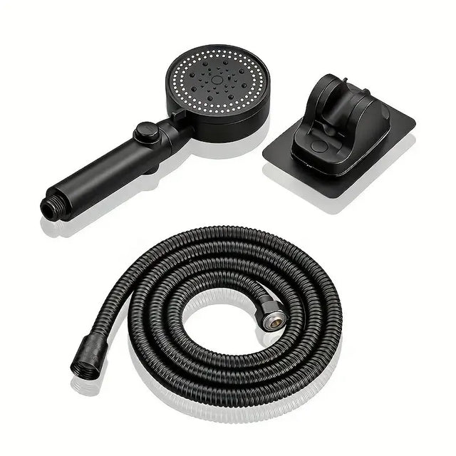 Hjemix | Aquaflex - Svart Høytrykks-Dusjhode Med Feste Og Slange