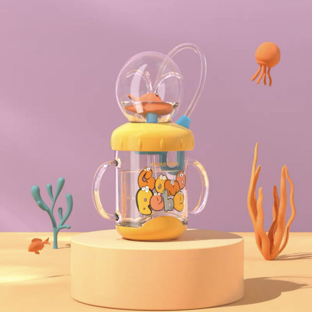 Cute Whale Design - With its turbo compressor mechanism, this cup has a valve that uses air pressure to draw in and squirt water, making it fun for young children to get excited about drinking water.