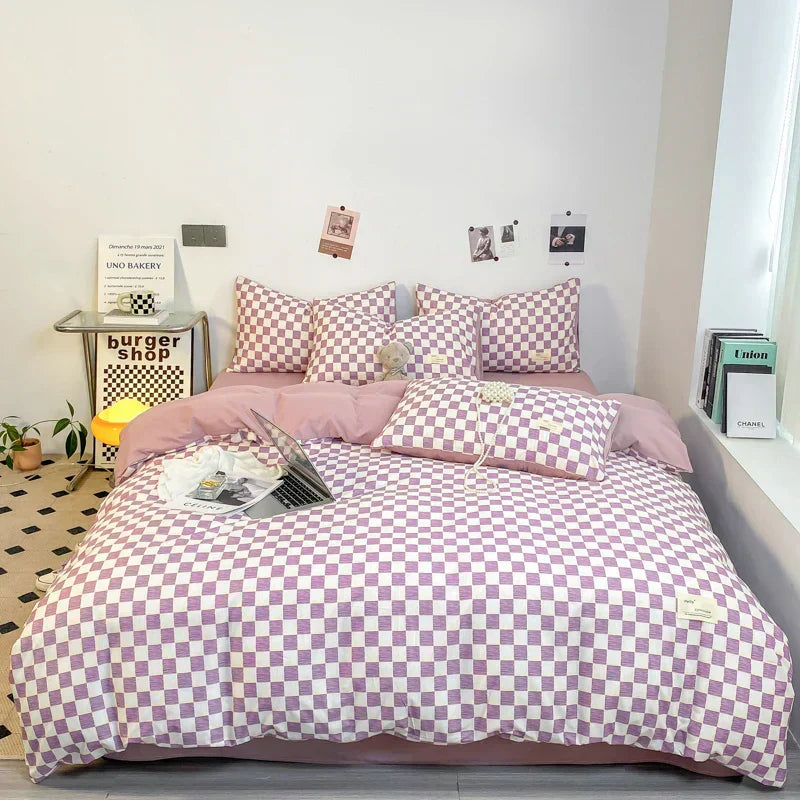 Utforsk det rutete mønsteret som kombinerer en raffinert estetikk med praktisk bruk på en perfekt måte. Dets særegne sjakkbrettdesign tilfører en forfriskende og tidløs atmosfære til soverommet ditt.