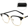 Det anbefales å rengjøre linsene med et mikrofiberklut for å opprettholde klarheten. Disse brillene er designet for innendørs bruk for å redusere øyestress fra digitale enheter. Ikke egnet for bruk som beskyttelsesøyeutstyr mot fysiske påkjenninger. Omfavn den perfekte kombinasjonen av stil og beskyttelse med våre blå lys-blockerende halvrim-briller!