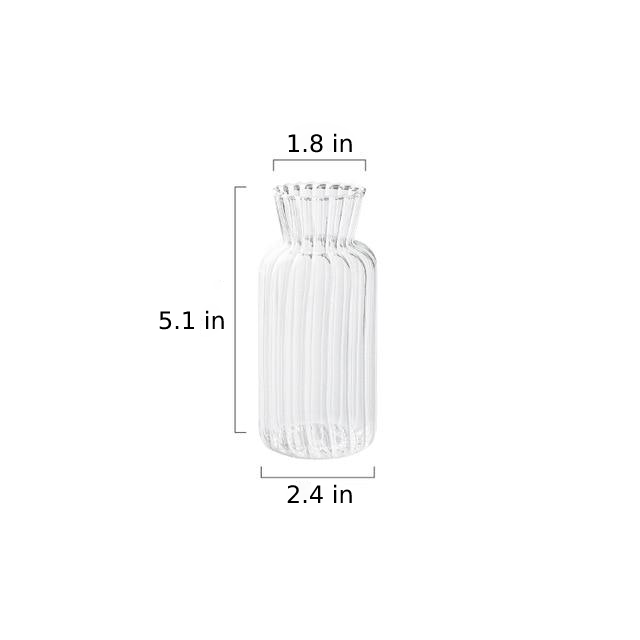 - Tulipanvase: 7.6 cm (B) x 15.5 cm (H) x 5.1 cm (Åpning)