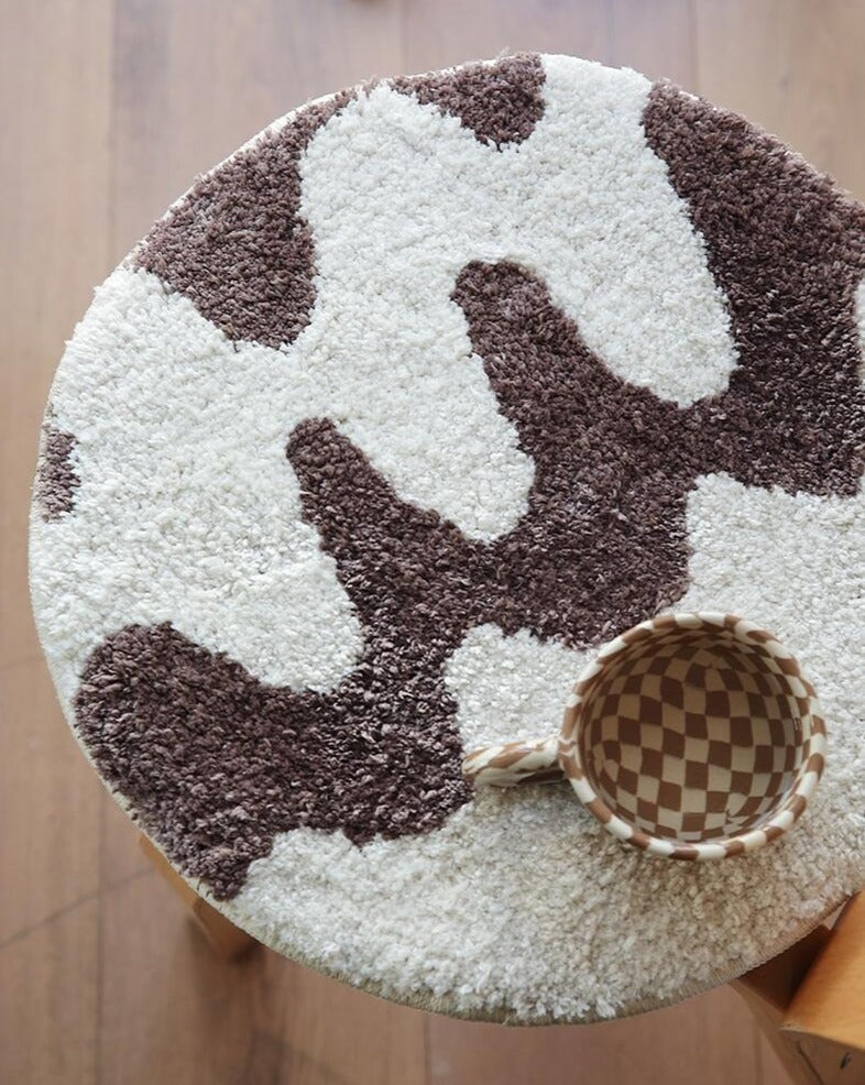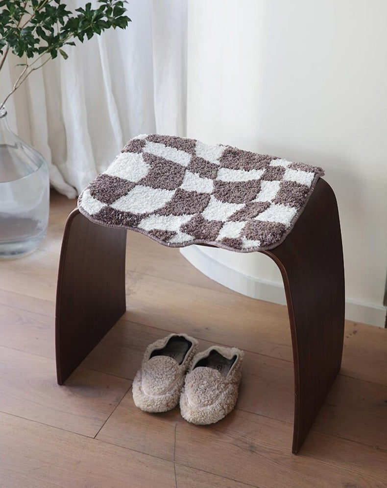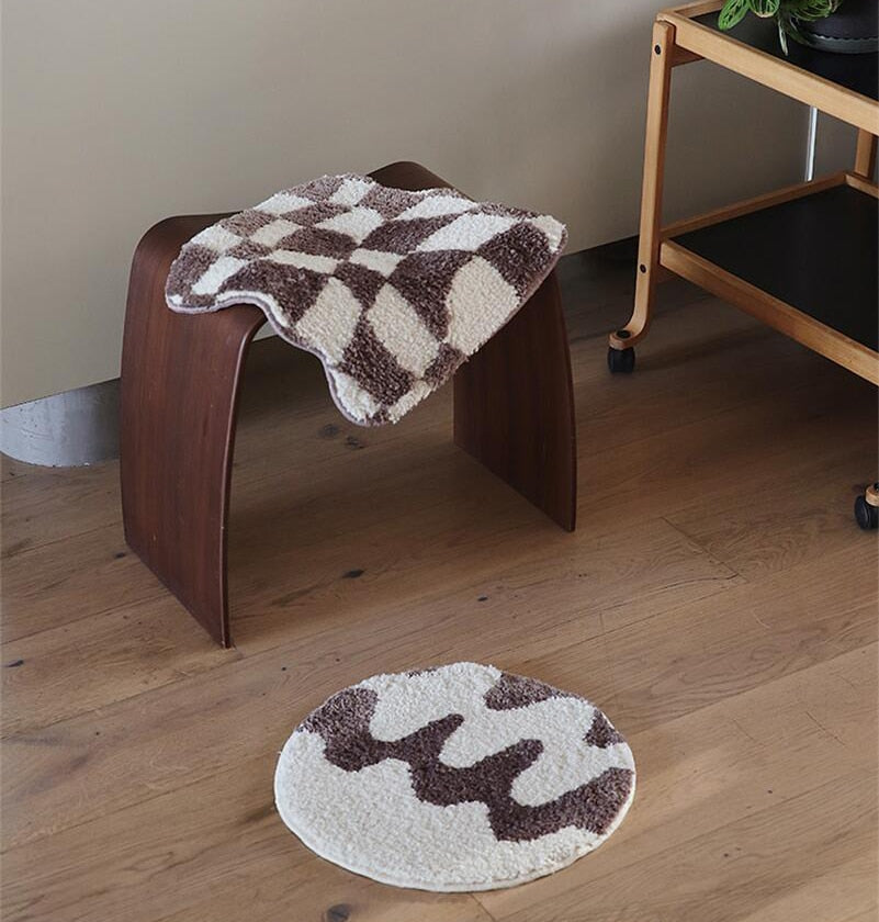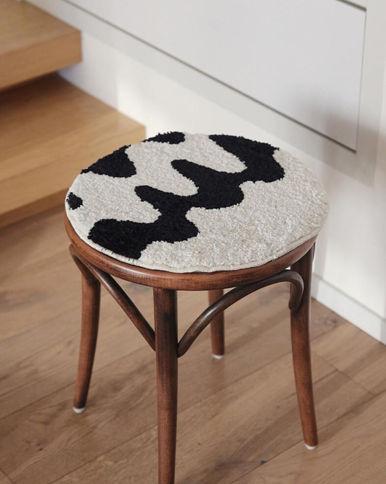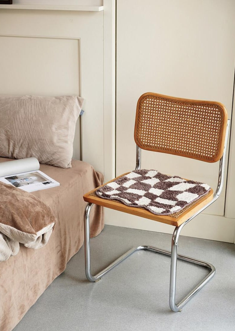 Behagelige puter med bølgete mønster og stripete design, ideelle for kontorstoler eller spisebord.
