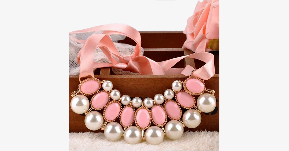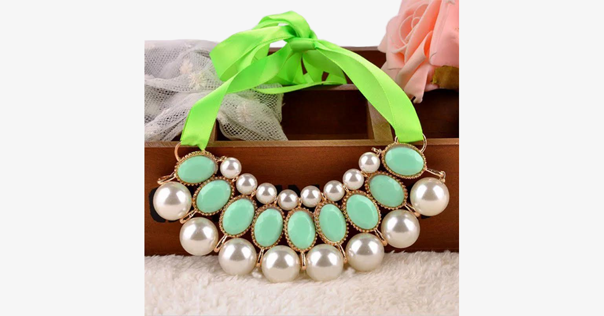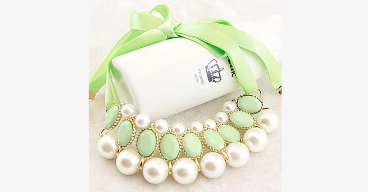 Dersom du har en strålende utstråling, er Ribbon Pearl Choker Statement Necklace det perfekte tilbehøret for deg! Dette fortryllende og stilige halskjedet vil virkelig heve utseendet ditt. Når du ønsker å tilføre antrekket ditt et hint av eleganse, kombinér det med dette fantastiske smykket!