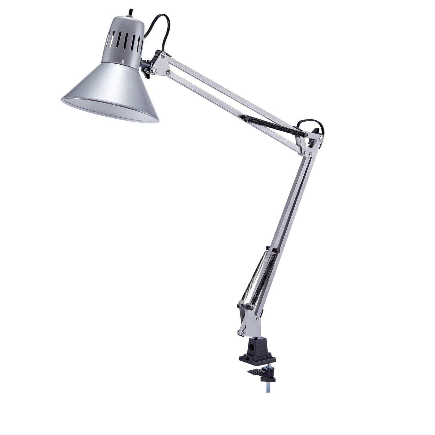 Selv om denne Bostitch justerbare svingarm skrivebordslampen i sølv ikke har en vanlig fot, har den et fullt funksjonelt og allsidig klemfeste! Den har en klemme på bunnen som gjør det enkelt å montere eller feste den til skrivebordet, arbeidsbenken eller kanten av bordet. Den lange, flerleddsarmen gjør at denne klem-lampen kan nå opptil 36 tommer høy og kan justeres for å innta enhver posisjon. Enten du ser etter den perfekte lampen til hjemmekontoret, lesing eller studietid, eller til håndarbeid, vil ingen overflater forbli ubelyst da denne lampen lett kan heves over skjermer og store bordplater. Hver klem-lampe har en hel metallkonstruksjon for å sikre slitestyrke og lang levetid. Den kommer også klar til bruk ettersom den inkluderer en utskiftbar LED-pære for strålende belysning i ethvert rom med rask tilkobling til en hvilken som helst stikkontakt. Denne lampen har et minimalistisk, klassisk utseende som gjør det enkelt å få den til å passe inn i ethvert kontor, studentbolig eller klasserom.