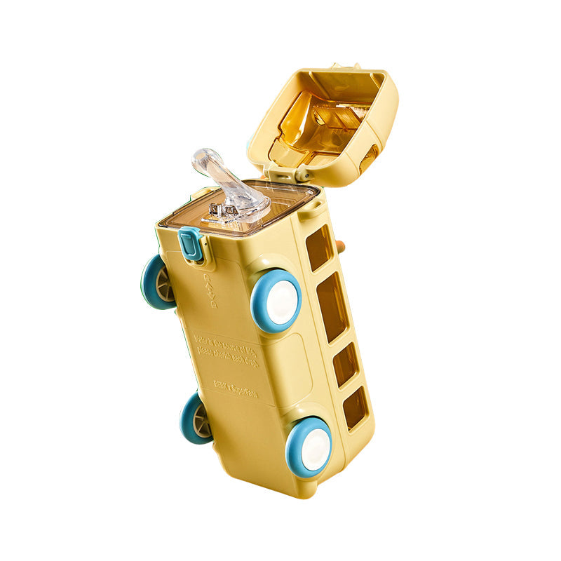 Plastmateriale: Denne flasken formet som en buss er laget av plast av matkvalitet og slitesterk silikon, noe som garanterer at den er solid, opprettholder sin form, og er laget for langvarig bruk.