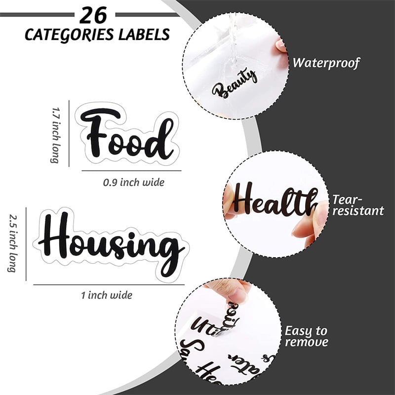 - Engelske klistremerker: Skriftstørrelsen passer godt til løse-lags lommer. De er laget av kvalitetsmateriale, vanntette, rivebestandige.