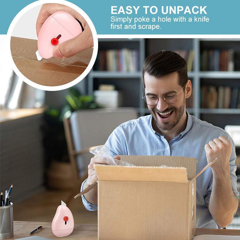 Dette stempelet er utstyrt med en skarp kant, noe som gjør det ideelt for å åpne og skjære gjennom kasser, brev og post. Trykk på knappen på siden for å aktivere det.