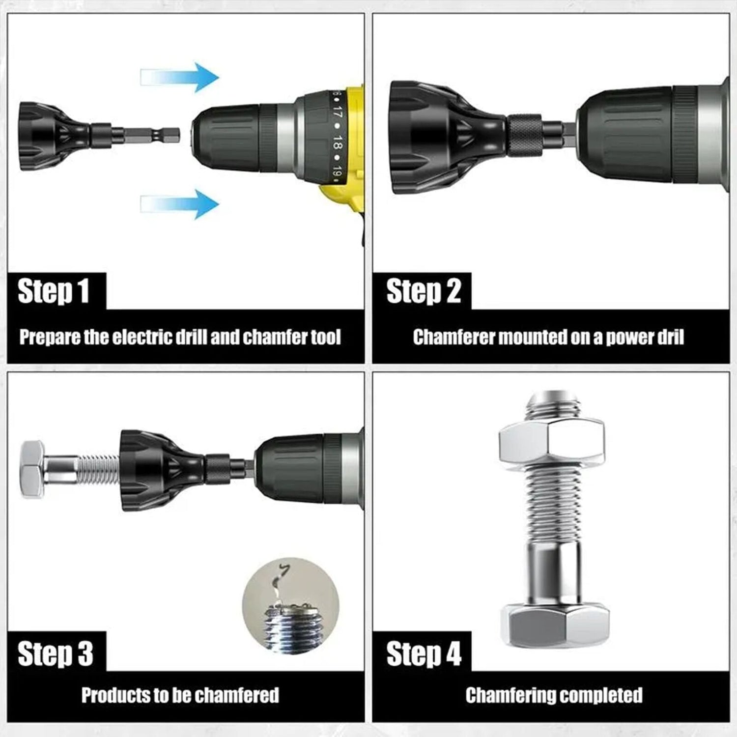 Enkel å bruke: Dette avgraderingsverktøyet for ekstern fas ulikt lett nedover de ytre kantene av en flatet bolt. Bare fest det til en elektrisk drill, påfør forsiktig trykk på bolt hodet; Enkel og rask løsning for å stramme mutrene