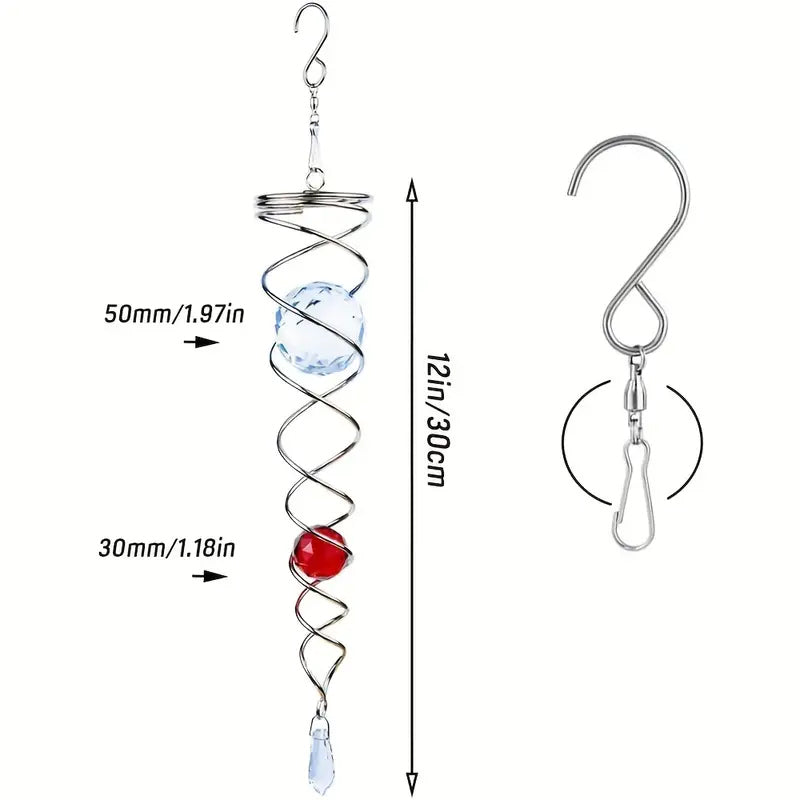 Installeringen er rask og lett, med en krok på toppen av spiralen. Heng opp din vind mandala og kombiner den med denne fantastiske spiralen for å lage en tiltalende visuell effekt.