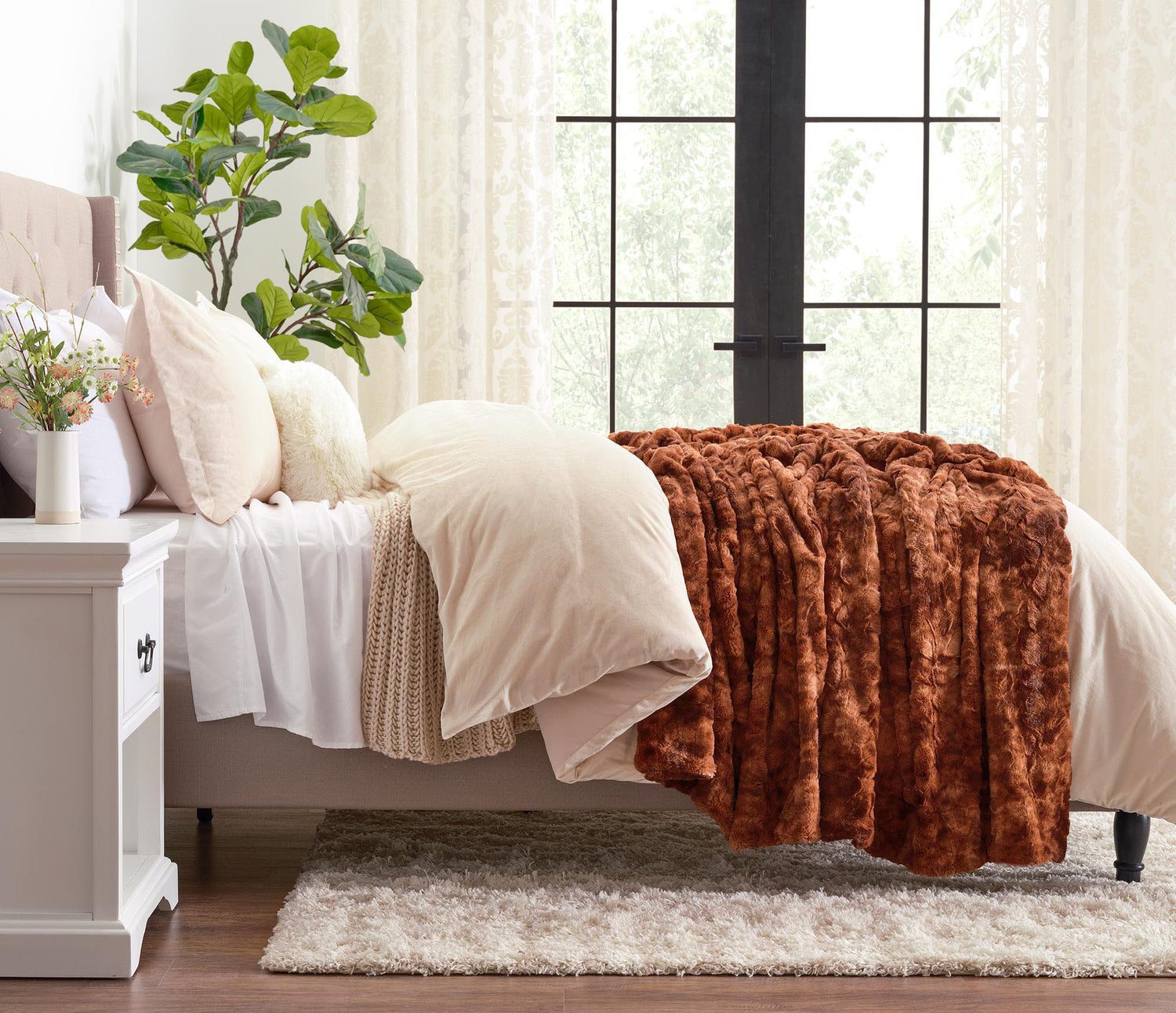Dette kasteteppet er laget av eksepsjonelt myk, høykvalitets mikrofiber imitasjonspels. Det innbydende, teksturerte imitasjonsfleece-stoffet hever ikke bare innredningen i stuen eller soverommet ditt, men gir også en koselig følelse.