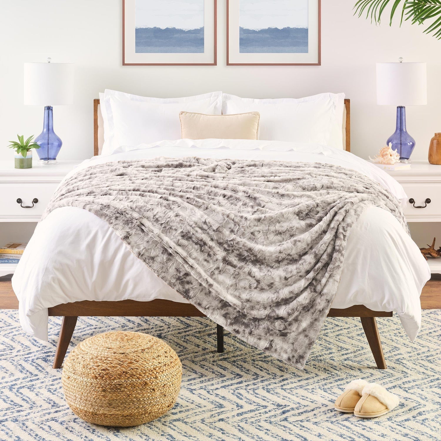 Hjemix | Dobbeltsidig oversized ulv faux fur kastepledd