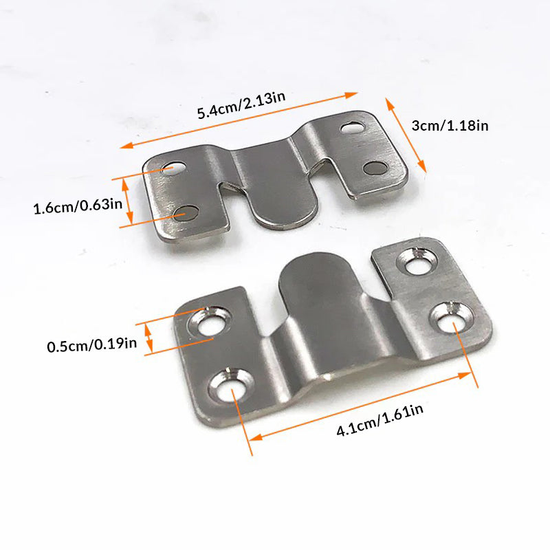 【Lett Montering】 For å feste hengeren, bruk lange skruer til å montere den på veggen med den buede siden opp. Deretter, fest en annen henger til et møbel med skruer, og sørg for at den buede siden er vendt nedover, noe som muliggjør en jevn forbindelseslinje mellom de to hengene.