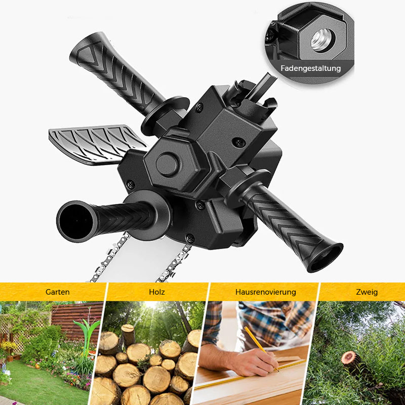 - 【Enkel tilpasning】 Boreutstyret for kjedesager er et praktisk verktøy som gir brukerne muligheten til å bytte ut en elektrisk drill med en kjedesag. Dette gjør det enkelt å skifte mellom bore- og sagfunksjoner. Med dette ombyggingssettet trenger man ikke å investere i en ny kjedesag; det er nok å sette av tid til montering for å spare både penger og ressurser.