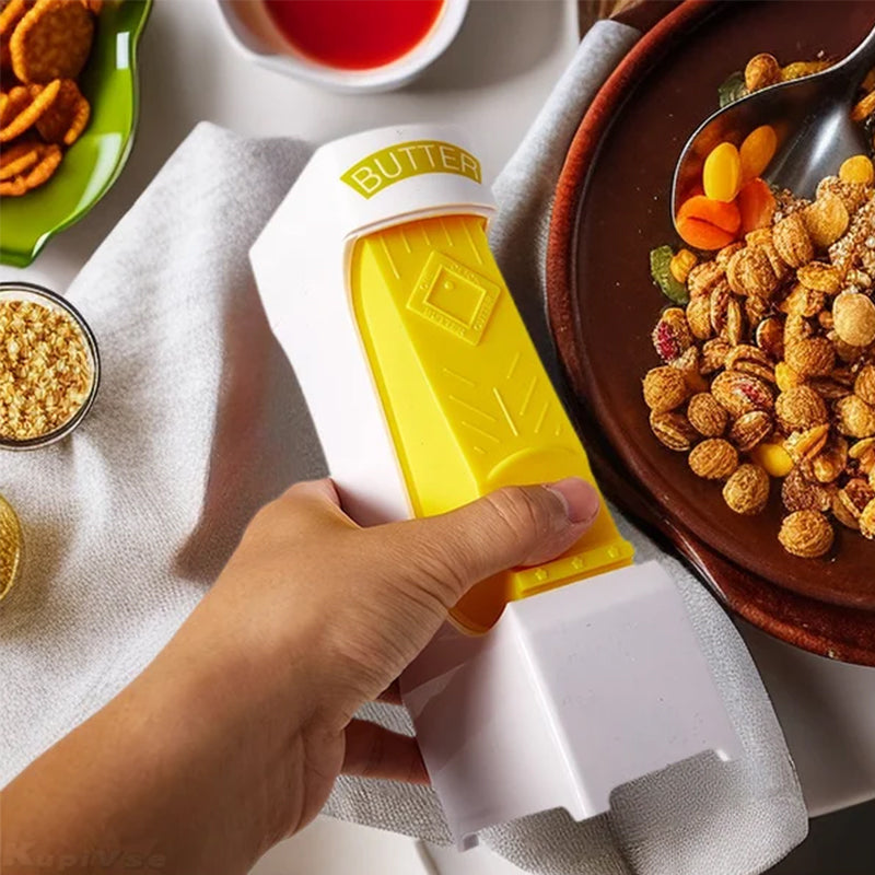 🎁【Trykk-knapp Smørkutter】 Vår innovative smørkutter gjør det enkelt å håndtere harde smørstykker. Den praktiske en-knapp-funksjonaliteten lar deg enkelt kutte smøret i små biter, samtidig som den holder hendene dine rene og unngår behovet for kniver eller spatler.