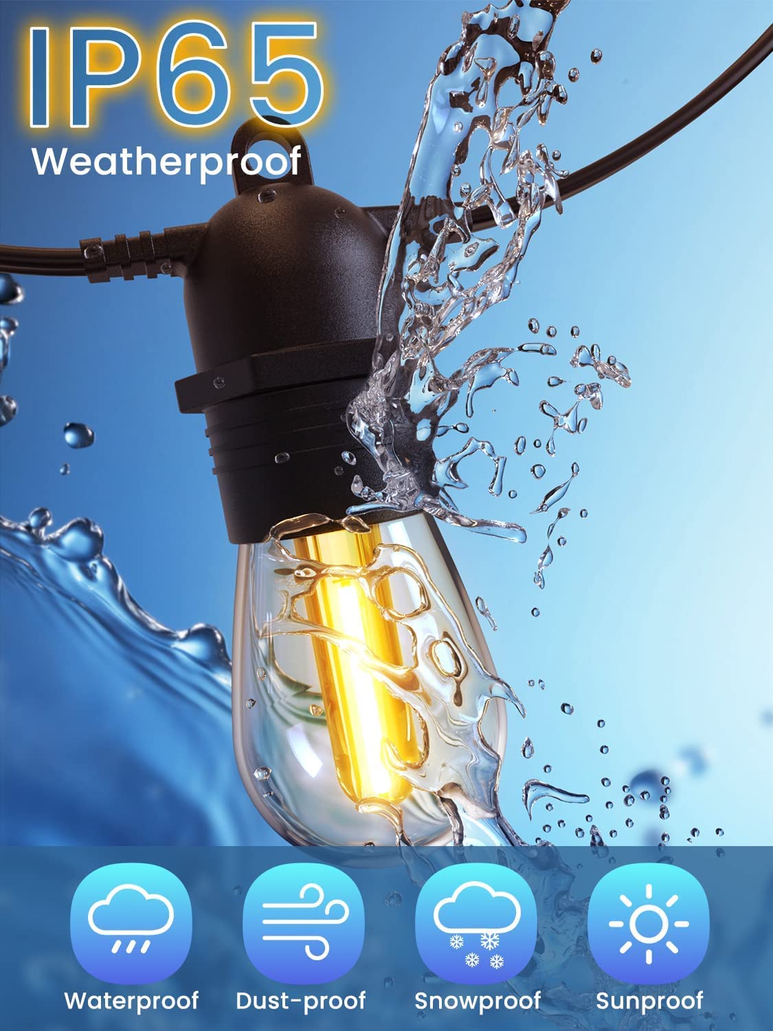 Hjemix | Festoon Lights Utendørs, 53FT/16M S14 Utendørs Hage LED Lyslenker, IP65 Vanntett Utendørs Lyslenker Hovedstrøm 2700K 15+1 (Erstatning) Lyspærer for Utendørs Terrasse Hage Bryllup Fest