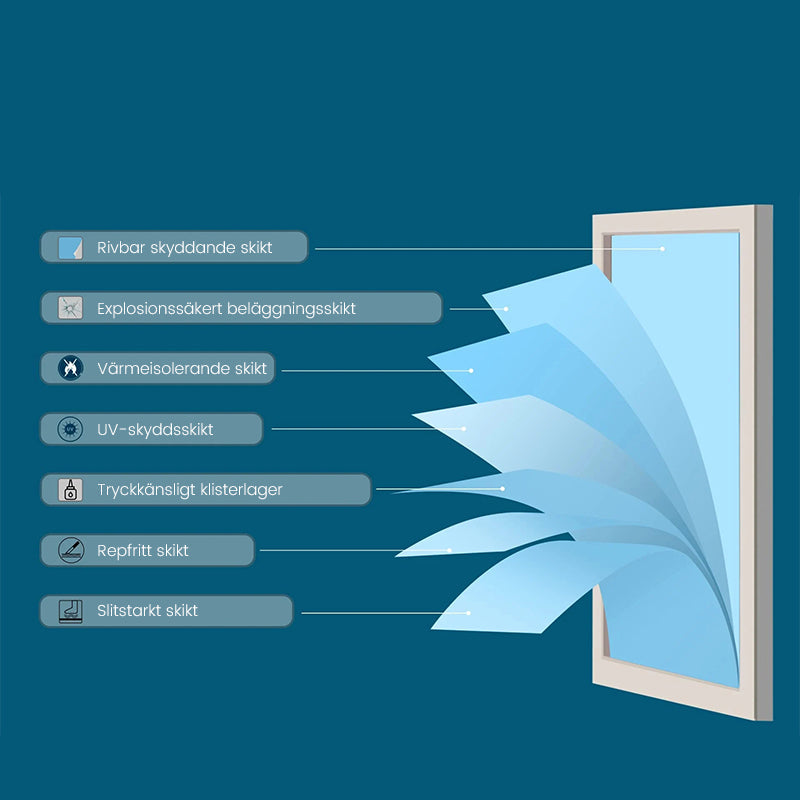 Våre vindusfilmer er utviklet uten lim, noe som unngår løslipp av skadelige kjemikalier og forenkler installasjonsprosessen. Sørg for at vindusflaten er helt ren før du sprayer både filmen og vinduet med en såpevannsløsning. Denne avtakbare solbeskyttelsesfilmen, laget av 0,15 mm tykk vinyl, er gjennomsiktig og tillater lys å slippe gjennom, hvilket fjerner behovet for lim under installasjonen. Dette gjør oppgaven svært enkel! Når du bestemmer deg for å ta filmen bort, kan den lett fjernes uten klissete rester. Merk: Dersom det dannes bobler, kan du forsiktig løfte filmen, spraye mer vann på glasset og filmen, og jevne den ut; håndtering av bobler er lett.