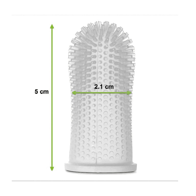 Den smarte designen av fingerbørsten gjør det enkelt å nå de vanskeligere områdene, og de myke bustene er milde mot tennene og tannkjøttet til ditt kjæledyr. Jevnlig bruk av denne tannbørsten er med på å minimere dannelse av tannstein og plakk, hindre periodontal sykdommer, samt friske opp pusten til hunden din.