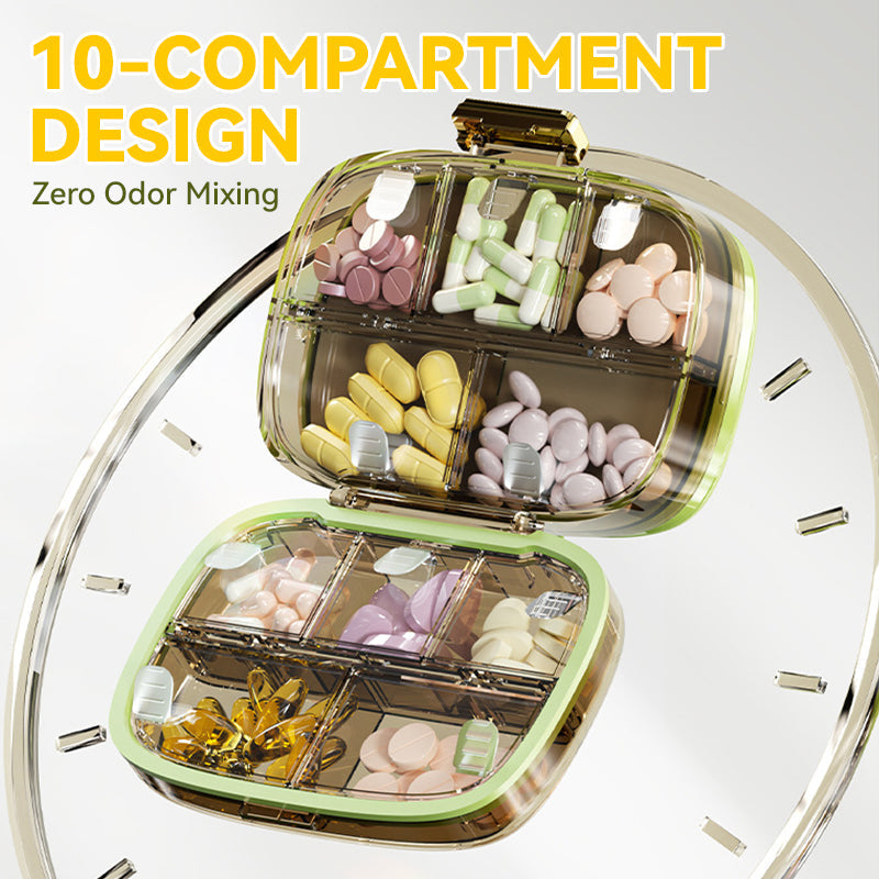 INTELLIGENT DESIGN MED TI ROM- Ti uavhengig forseglede rom isolerer forskjellige kosttilskudd fullstendig. Hvert rom har plass til 2-3 standardkapsler eller tabletter, noe som letter daglig doseringsstyring samtidig som det forhindrer krysskontaminering av lukt og smak mellom rommene.