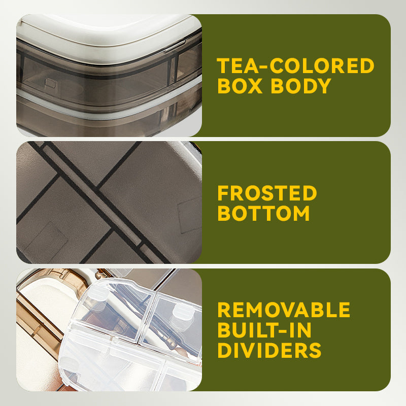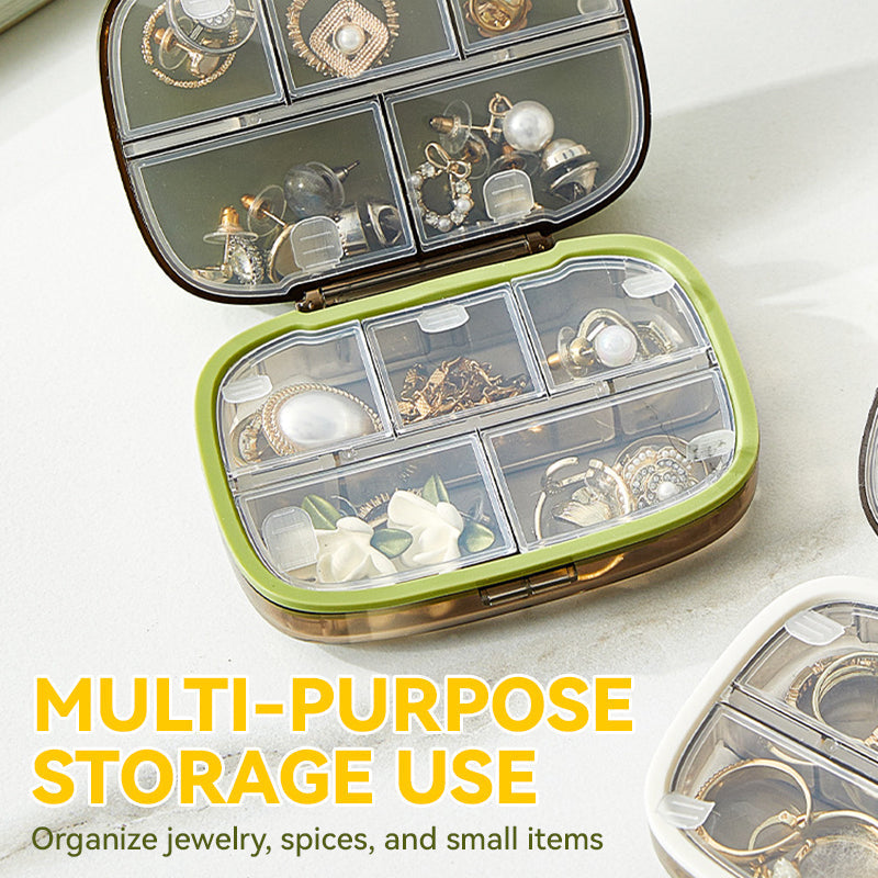 FLERBRUKS LAGRINGSKAPASITET- Utover pilleorganisering, lagrer de avtakbare rommene perfekt smykker som øredobber og ringer, krydder under reiser, sysett og andre små nødvendigheter. Den lufttette forseglingen holder innholdet sikkert og beskyttet mot fuktighet og luft.