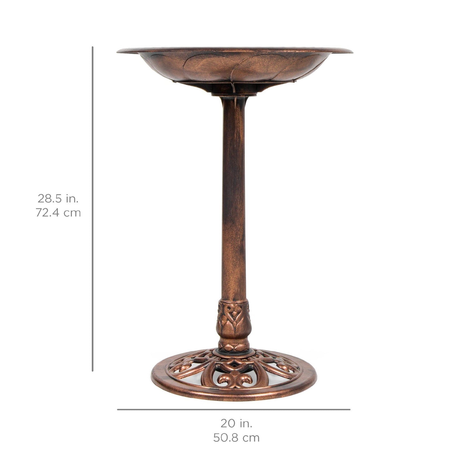 Dette fuglebadet, inspirert av en vintage stil, fremviser sjarmerende utskjæringer og Fleur-de-Lis detaljer, som gir et sofistikert preg til uterommet ditt. Laget av høykvalitets polyharpiks, er det lett, ikke-reaktivt, og rustresistent. Ved å tiltrekke fugler, bidrar du også til å støtte miljøet ved at de hjelper til med jordlufting, næringsfordeling, og kontroll av invasive arter.