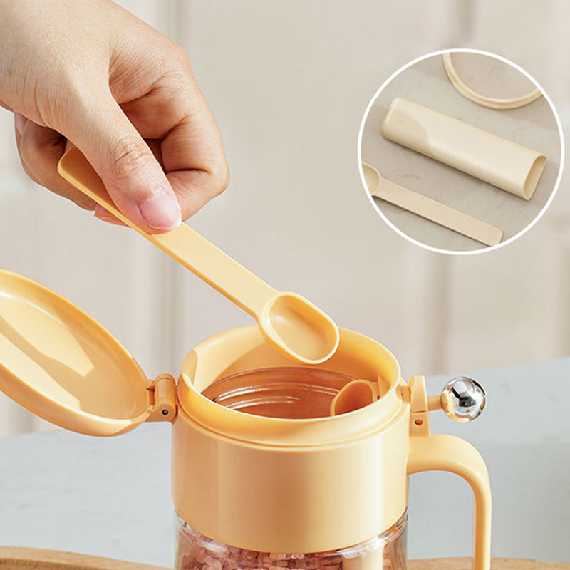 Pakken inkluderer: 1*Fuktsikker og praktisk krydderkrukke med skje