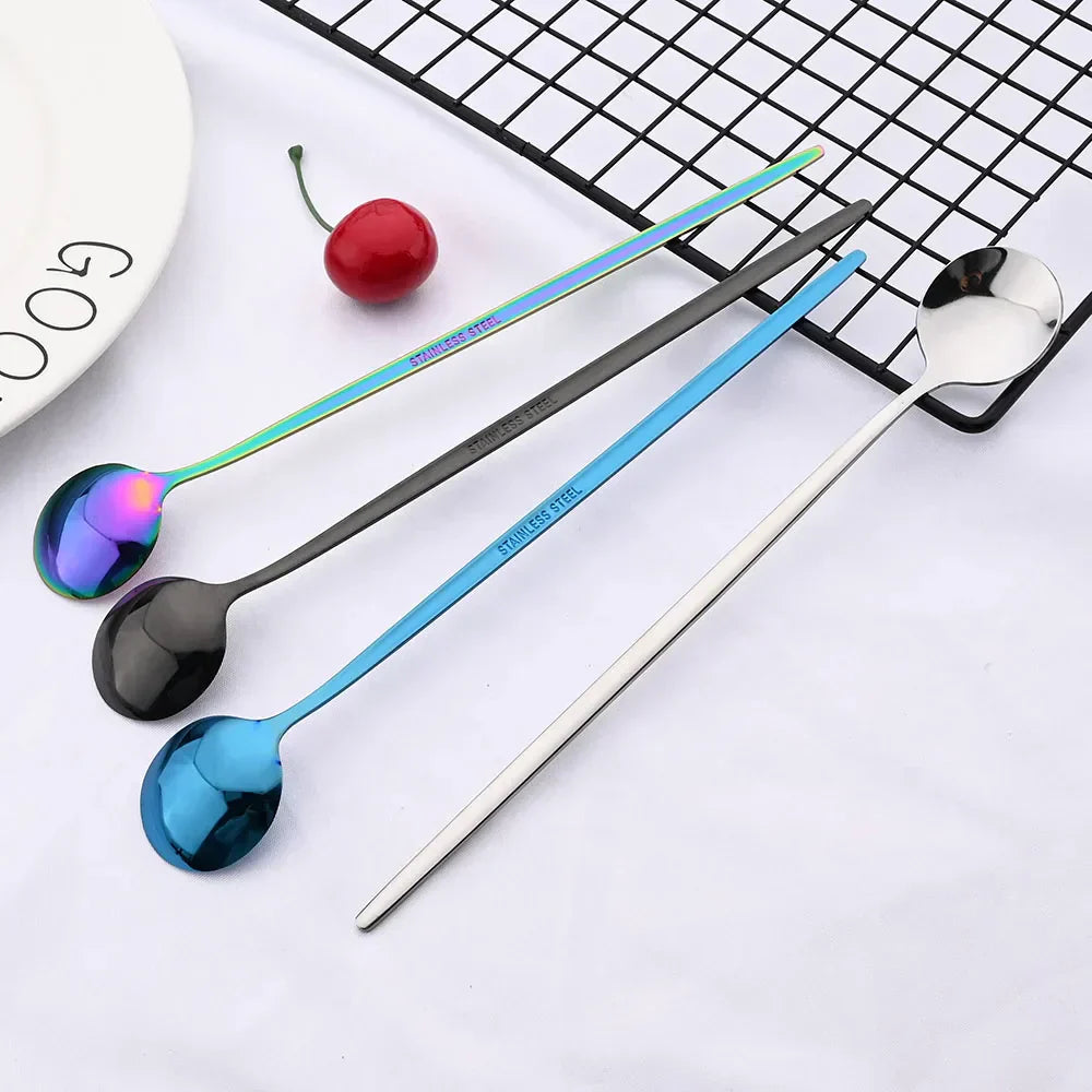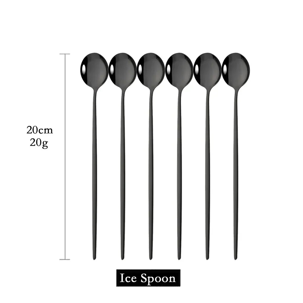 Hjemix | Gylden 6-delt Langt Håndtak Skje Sett