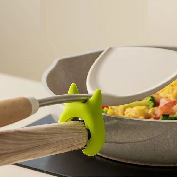 Fest skjeholderen på grytehåndtaket for å holde benkeplaten ren og redskapene innen rekkevidde.