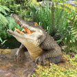 Større enn vi kunne ha forestilt oss, denne fryktelige krokodillen er skulptert av førsteklasses designharpiks - komplett med taggete tenner og værbitte skjell - og hopper ut av uhyggelig mørke for å se nervøse hagegjester etter mat. Kan du føle hans varme pust?